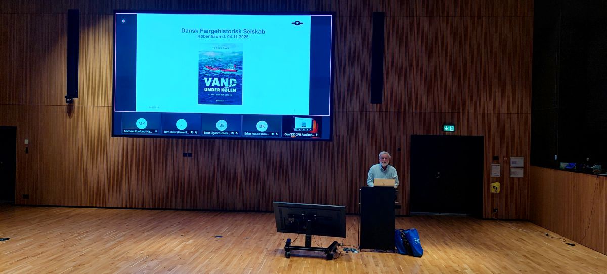 Dagens vejr var heldigvis sådan, at vores tyske medlemmer Anja og Heino Sehlmann kunne køre turen fra Hamburg til Odense i bil og dermed berige os med nogle af deres færgemæssige oplevelser.